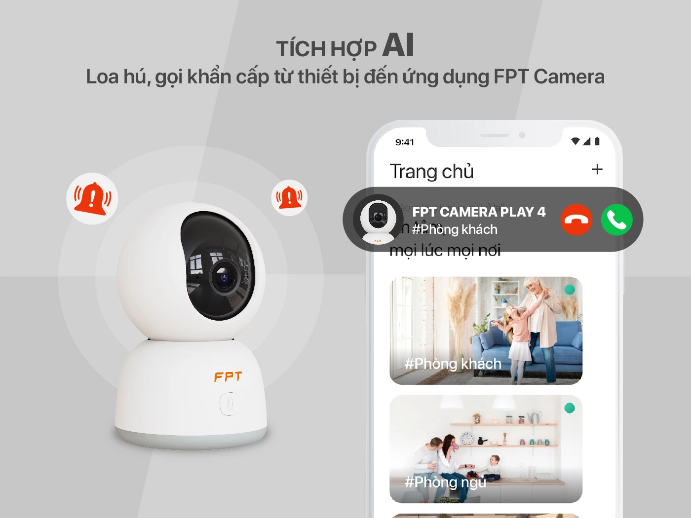 - Cảnh báo: Loa hú, gọi khẩn cấp từ thiết bị đến ứng dụng FPT Camera